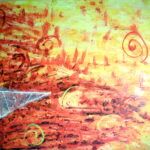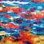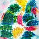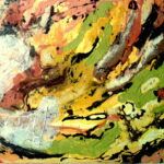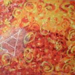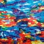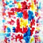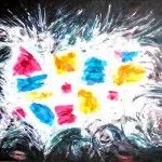 - Serie: Diálogo de partículas antes la Creación. 65×54.cm. Acuarela y acrílico sobre tela. 2015.
