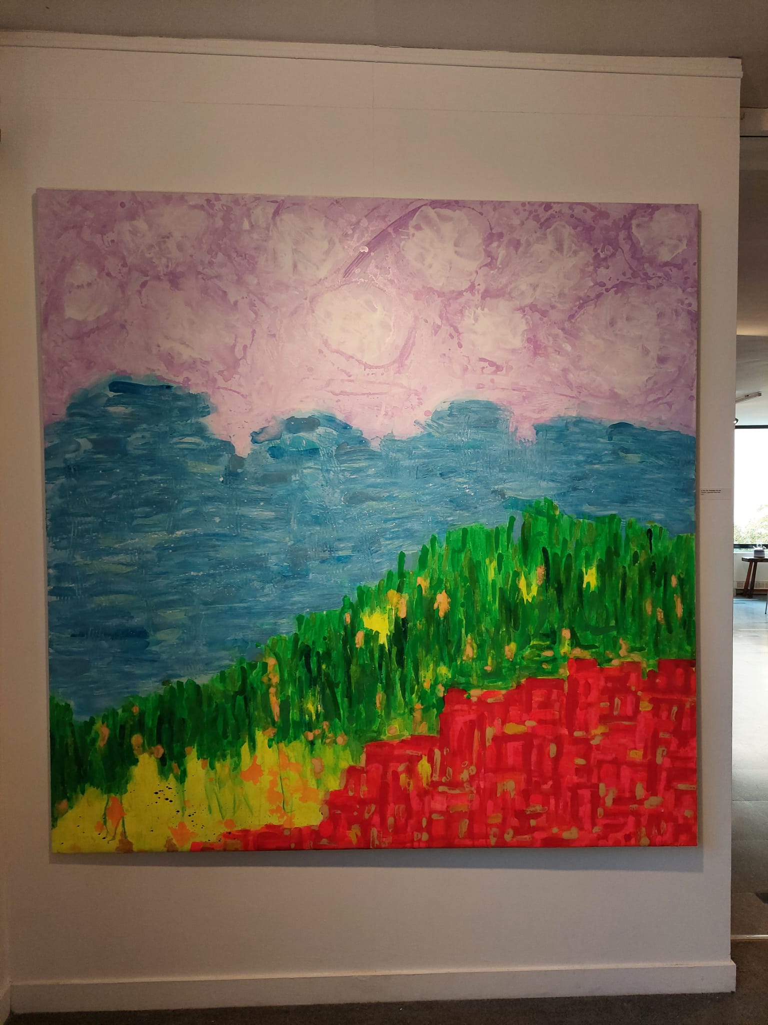 J’ai commencé l’année 2021 en ayant entrepris un travail sur les couleurs de l’arc-en-ciel avec le souci d’élaborer les couleurs exclusivement avec des pigments en medium acrylique et des pigments fluorescents pour obtenir des colorations plus vives, plus vibrantes. C’est ainsi que j’ai introduit les couleurs et les formes de l’arc-en-ciel dans leur interprétation et exaltation, dans leur rêve de traités, louanges et beautés que le jeu des couleurs réalise dans les horizons et tempêtes de la planète ainsi que sur tout objet qu’il touche.»