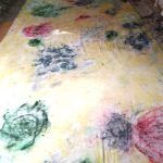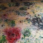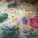 Y rodando, en la serie «Abstracciones» – desarrollada en paralelo a «Diálogo de Partículas…» – exploro ya no el inicio de un proceso creativo, si no el proceso en sí. Remitiéndome al estilo y la técnica de los máximos exponentes del expresionismo abstracto americano, me adentro en el lenguaje de la abstracción para buscar en él mi propio estilo, mi propio vocabulario, mi propio yo.>>