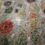 2018“Microcosmo I” o “Torrentera de muntanya”, es una obra empezada en el “Torrent d´Erinya” en el Prepirineo de Lleida. En el río dejé la tela en el agua, impregnándose de la energía del riachuelo, después en la parte seca estuve esgrafiando los relieves de las rocas y haciendo una primera coloración de rocas y del fondo, las líneas de agua sus choques y el recorrido del fluido del agua. Después en el taller trabajando mediante muchas capas de transparencias y barniz en la parte del agua para lograr esa transparencia y movimiento.