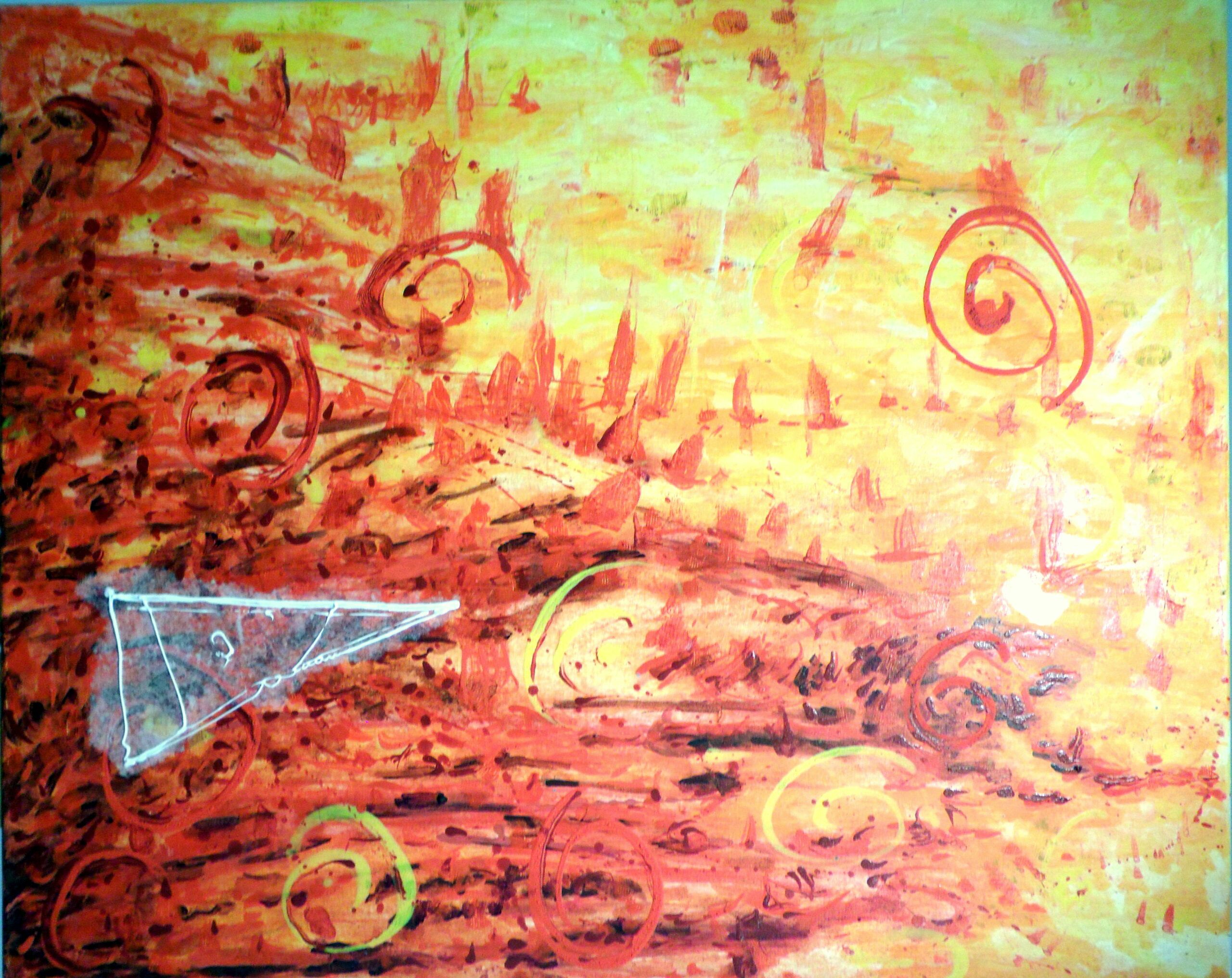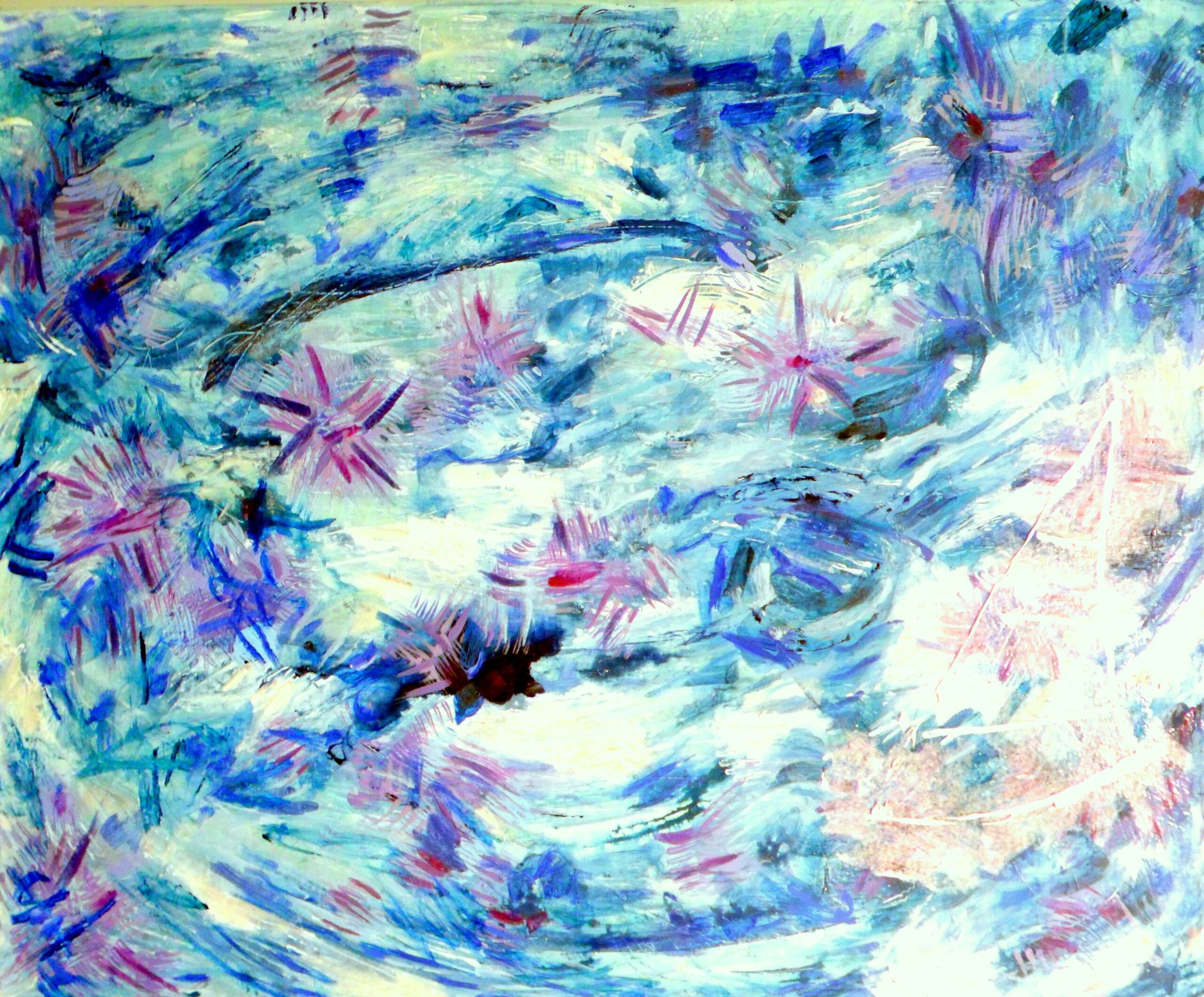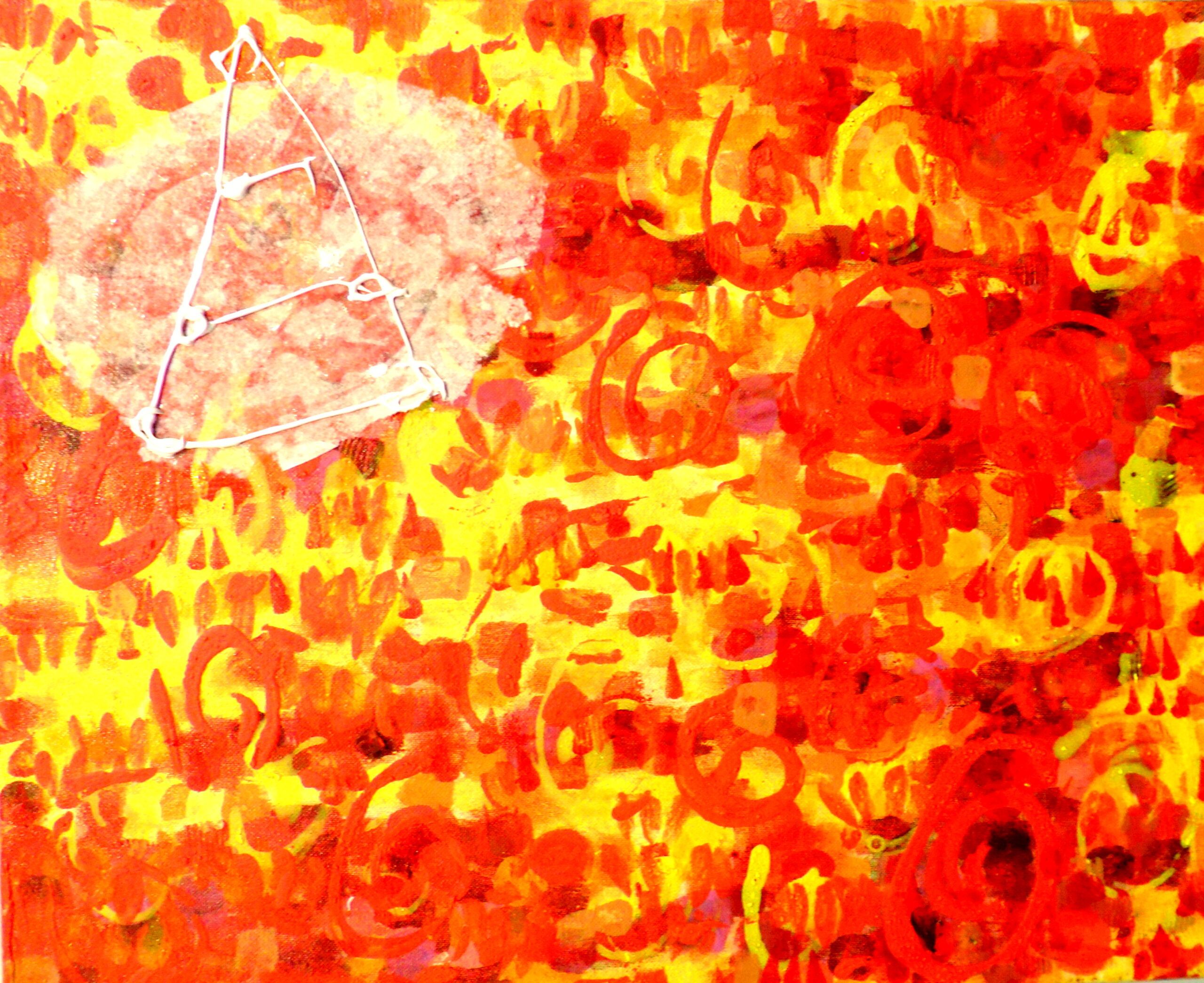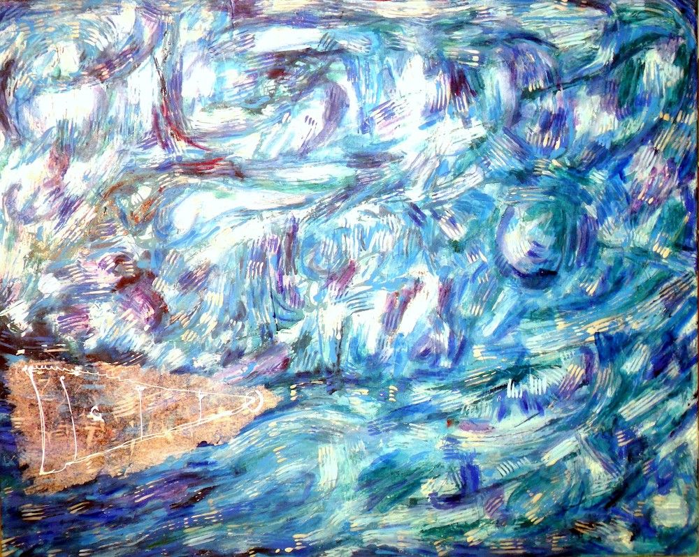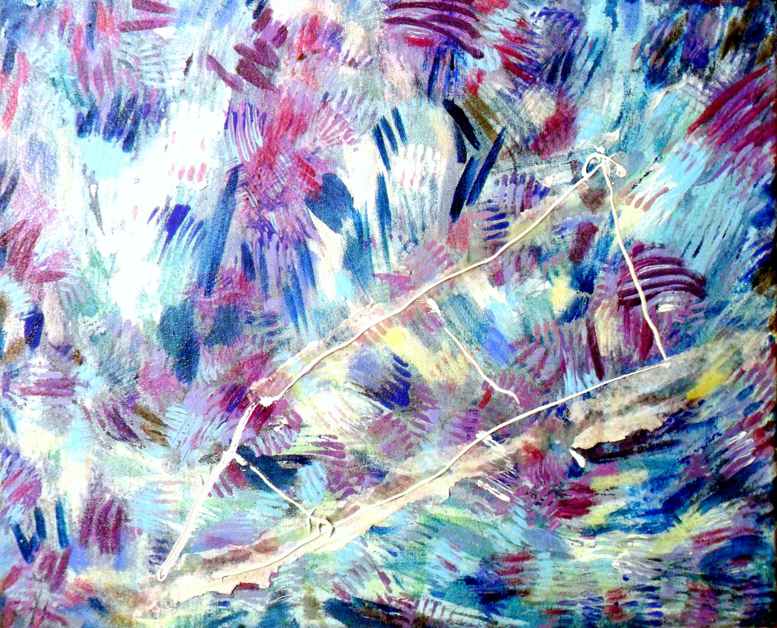 - Serie: Diálogo de partículas antes la Creación. 81 x 65 cm. Acuarela y acrílico sobre tela. 2015.