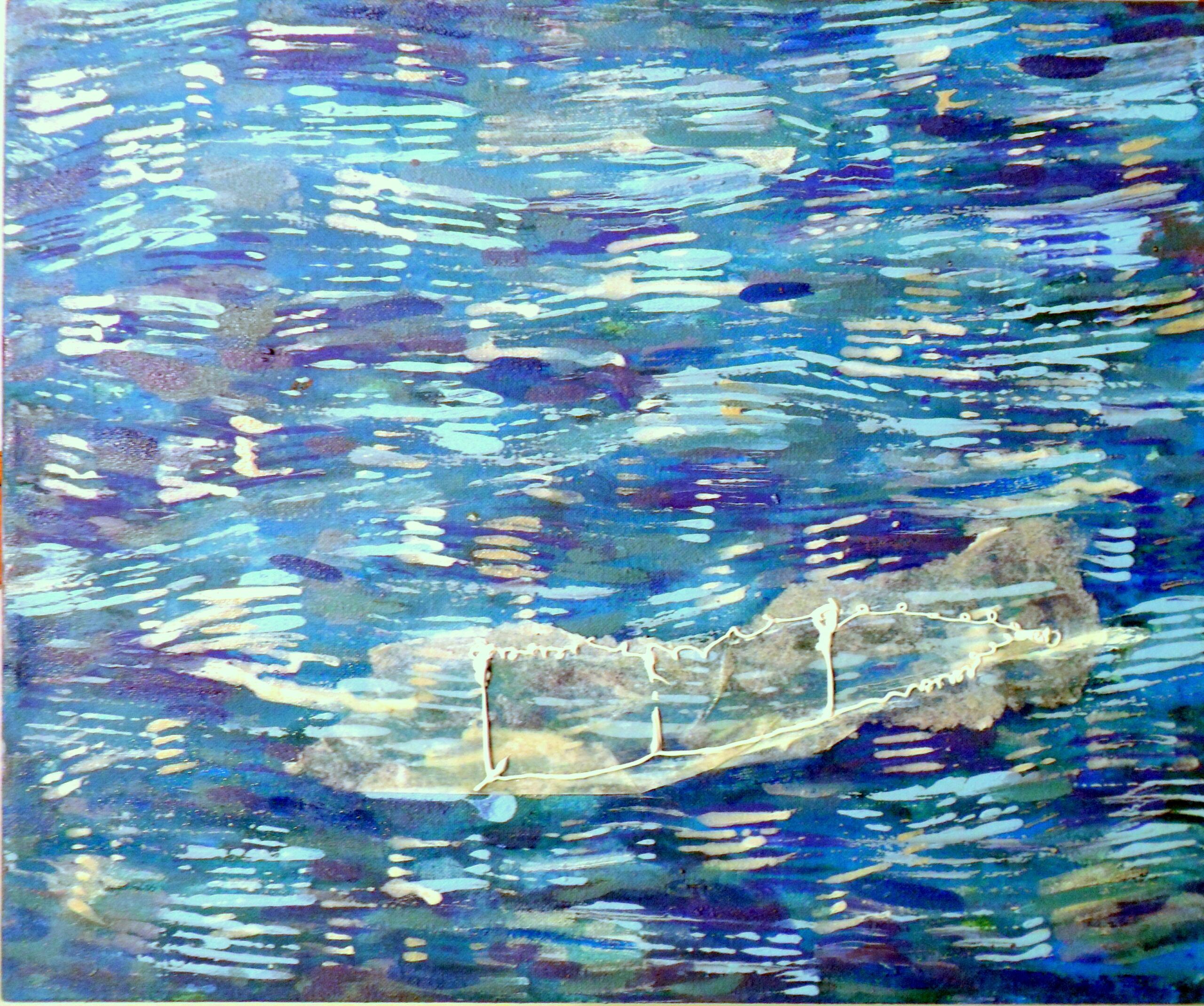 - Serie: Diálogo de partículas antes la Creación. 65×54.cm. Acuarela y acrílico sobre tela. 2015.