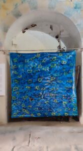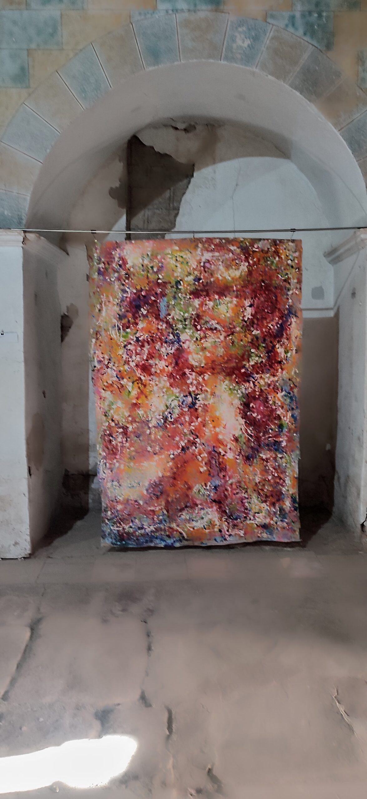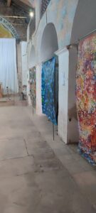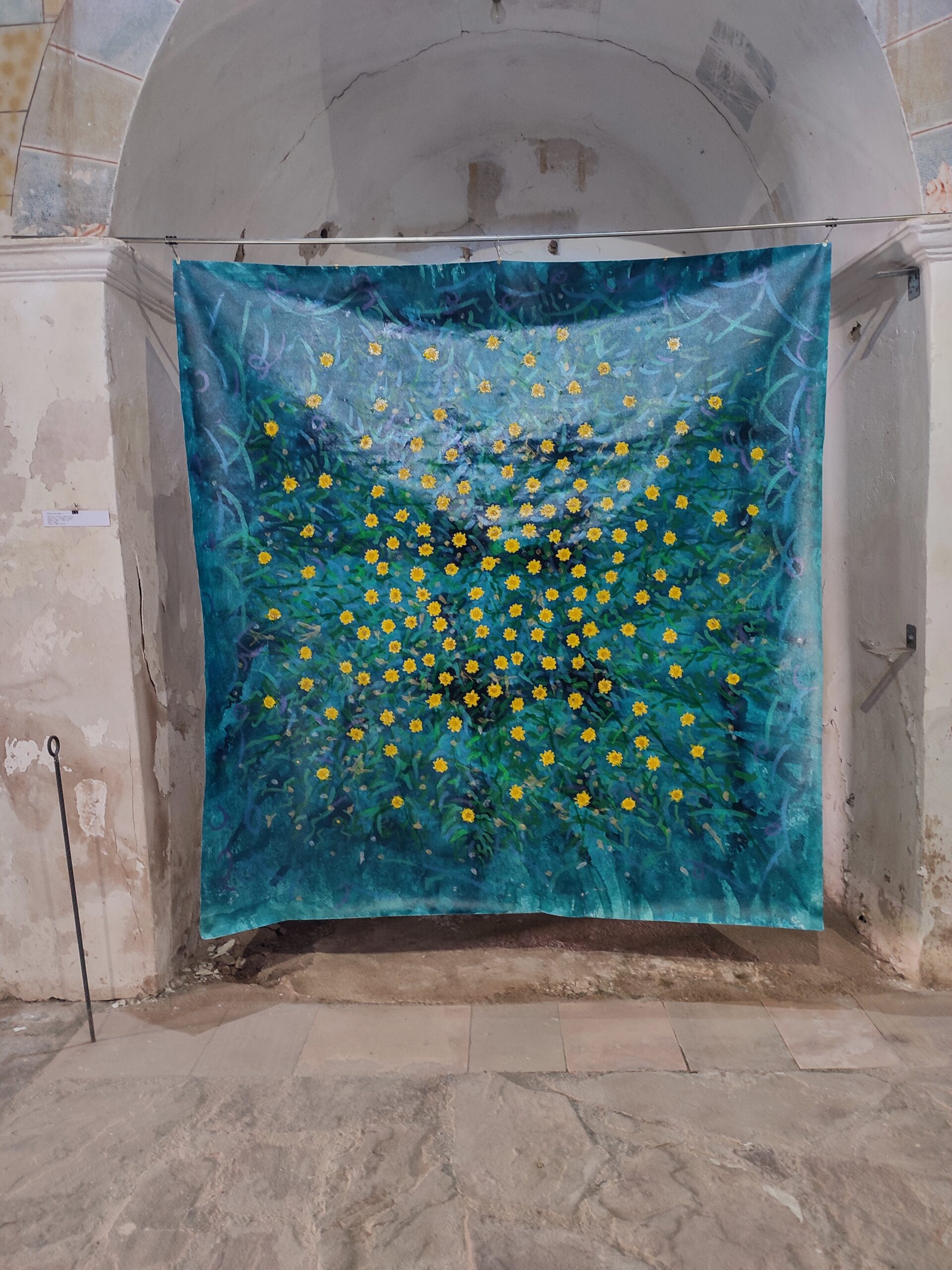HOMENATGE A LA TERRA és el nom de la sèrie on inspirant-me en imatges obtingudes a través de Google Earth, o en intervencions a la natura, per al traslladar-les al llenç plasmar les meravelles de la Terra……. tmbé les vaig portar en les peçes de formats grans, per aquest magnific espai escollit.