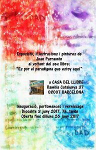 - Exposición de ilustraciones y pinturas de Joan Parramón Alrededor de su libro de poesías: “Es por el paradigma que estoy aquí” En: CASA DEL LLIBRE. Rambla Catalunya 37. 08007 BARCELONA Inauguración, perfomances y vernissage Sábado 3 de junio 2017. 7 horas tarde. Abierta hasta el 26 de junio Horarios de lunes a sábado de 9:30 a 21:30