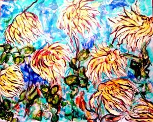 Flors grogues al vent de l´Estiu. Acrílico s.cartón. 40x50cm.