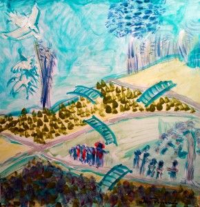 Viaje a SAMARKANDA. 40×40 cm. acrilico sobre papel. SAMARKANDA el jardin de la princesa raptada.