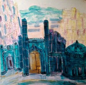 Viaje a SAMARKANDA. 40×40 cm. acrílico sobre papel. SAMARKANDA