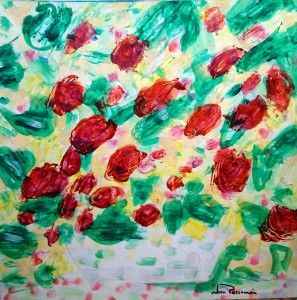 Viaje a SAMARKANDA. 60X60 cm. acrilico sobre papel. Flores de SAMARKANDA