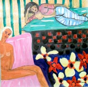 Viaje a SAMARKANDA. 60X60 cm. acrílico sobre papel. Odaliscas de MATISSE en SAMARKANDA