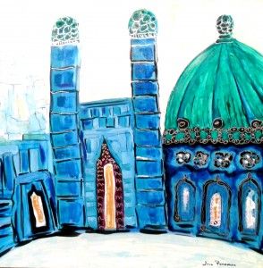 Viaje a SAMARKANDA. 60X60 cm. acrílico sobre papel. SAMARKANDA la partida.