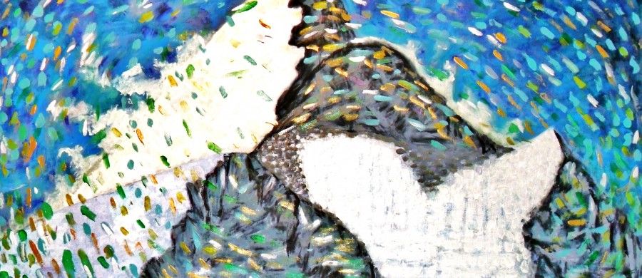 - AMAZONITA. La isla de la AMAZONITA 100 x 100 cm. Acrílicos, tintas y minerales sobre tela sobre bastidor. CON MINERALES DE amazonita incorporados a esta obra en las 2018