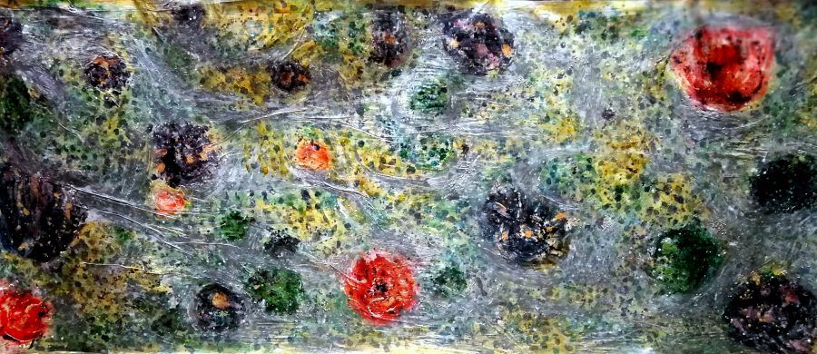 - MACROCOSMOS 3 . Serie Macrocosmos & microcosmos. mixta sobre papel. 100 x 70 cm. 2016. Tintas, acrílicos, látex y sal, cuarzos y carbunculo.