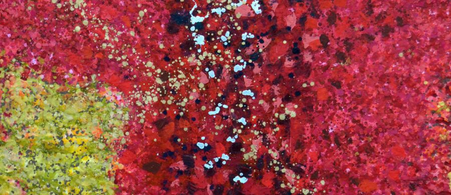 - Constelación en Rojo´s. 146 x 114 acrílico, tintas latex y barniz sobre tela sobre bastidor. 2017.